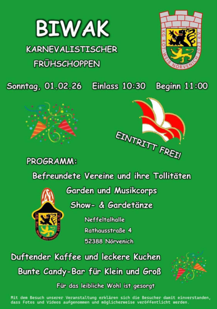 Türen auf für ein gemütliches Beisammensein in jecker Atmosphäre! Beim karnevalistischen Frühschoppen erwartet euch freier Eintritt, frisch gebrühter Kaffee, hausgemachte Kuchen und eine liebevoll gefüllte Candy Bar. Kommt vorbei, trefft Freunde und genießt den Karneval ganz entspannt.